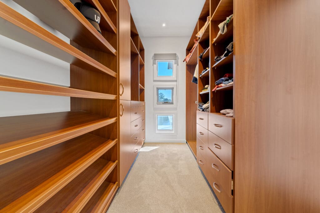 Inside, the layout is made for modern family living, with expansive open-plan spaces, soaring ceilings, and seamless indoor-outdoor flow. The kitchen is the heart of the home, complete with granite island, Miele appliances, integrated fridge, and a walk-through butler’s pantry/mudroom, ideal for busy households.