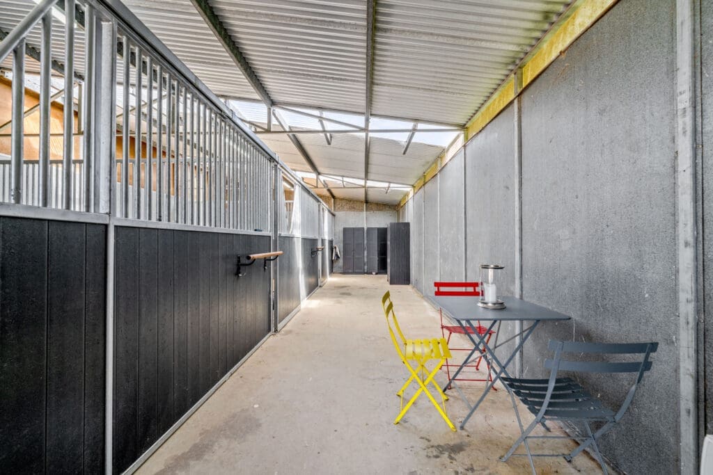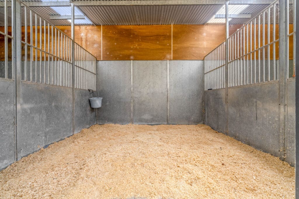 • Six lined stables with adjoining bathroom, feed and tack rooms